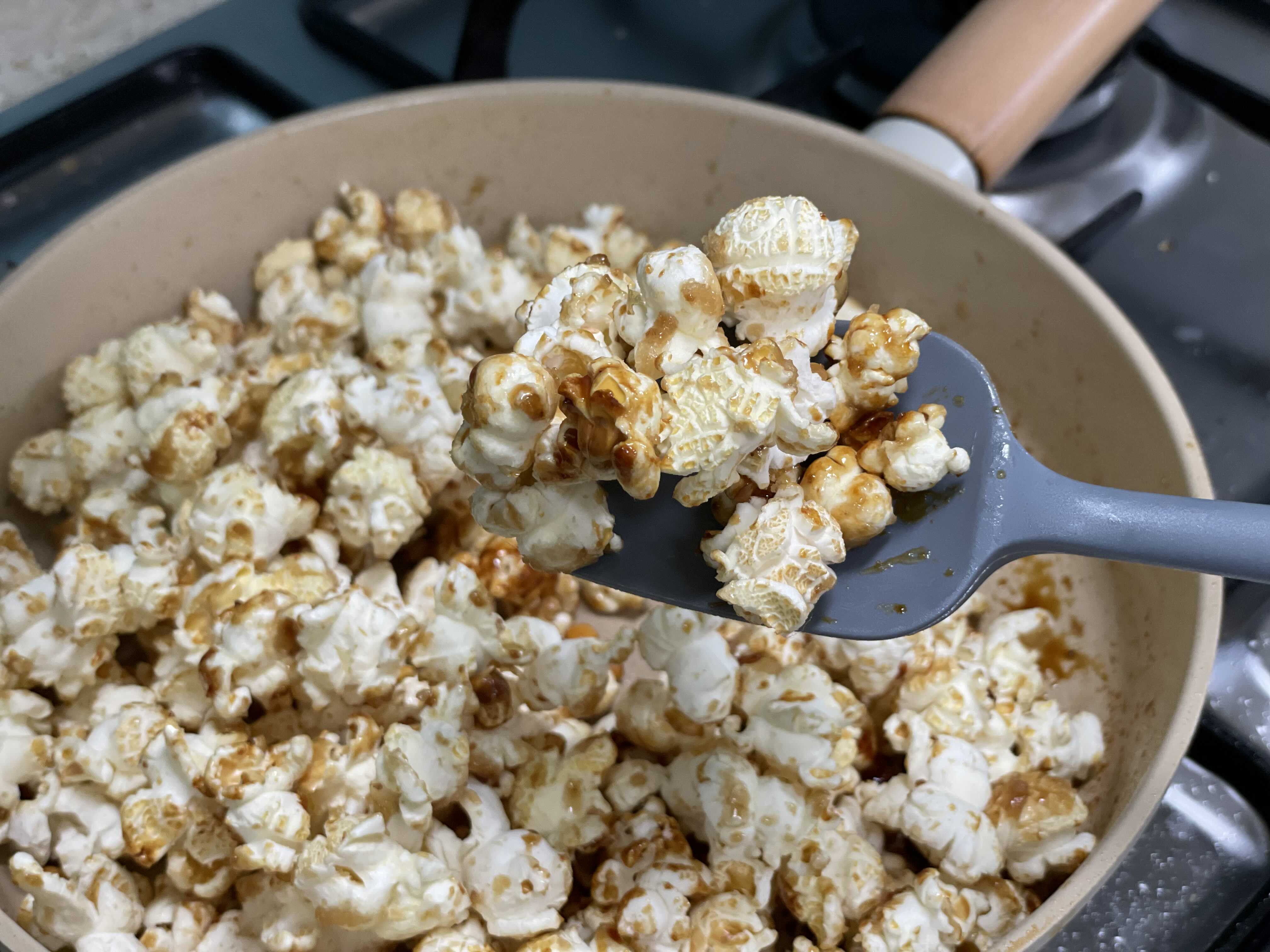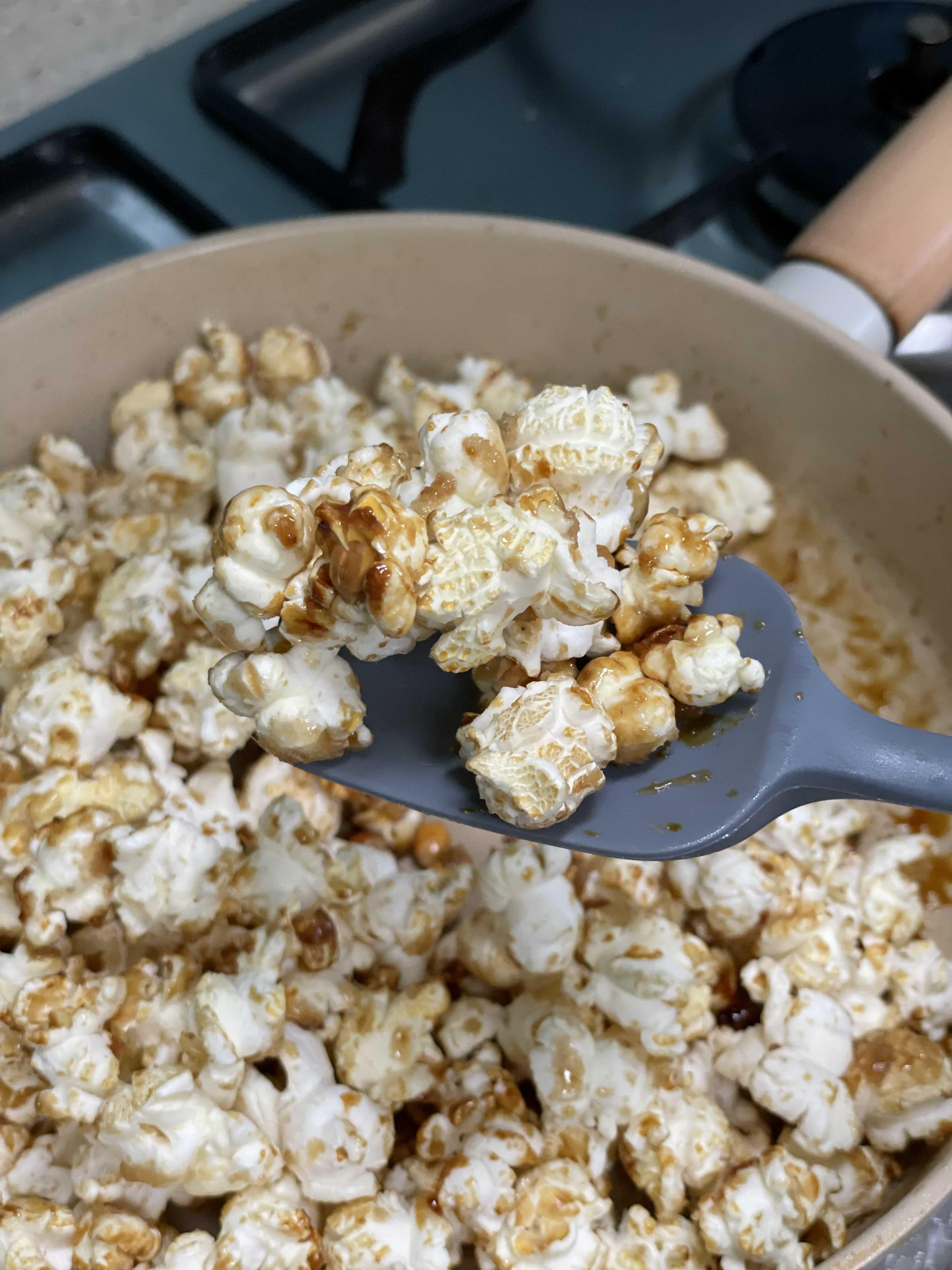 카라멜을 더 듬뿍 묻힌 팝콘을 만들 수 있어요.