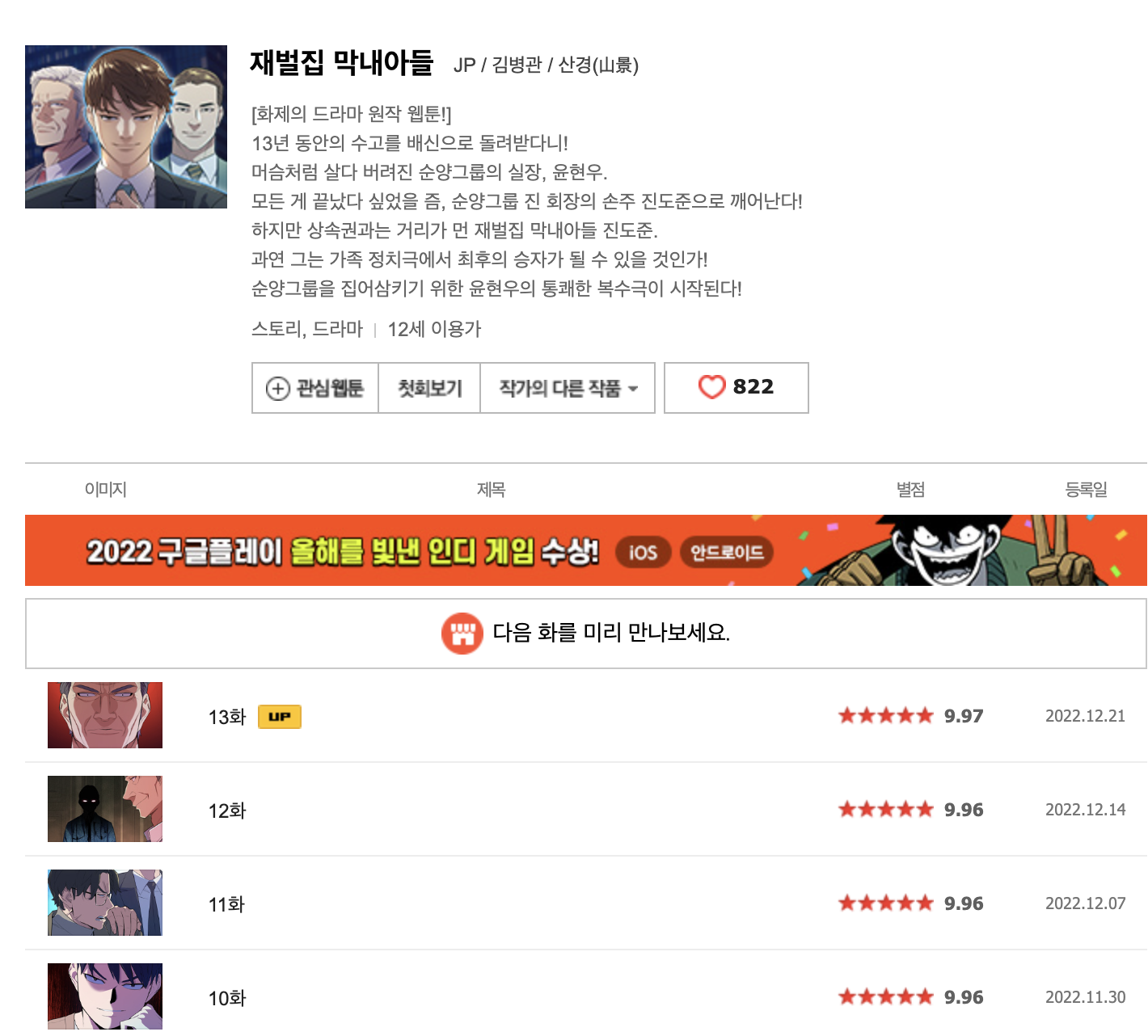 재벌집 막내아들 몇부작, 웹툰, 원작소설 본문